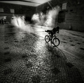 Il respiro fotografico è – fatta salva la naturale esuberanza di bambini al gioco – naturalmente lento, quasi a recuperare il rapporto tra l’uomo e uno spazio urbano volto a straniarne i giorni; ed è in questa sintesi che va interpretata l’esiguità dei soggetti, i quali, immersi negli spazi da egli stesso costruiti, lotta per ritrovare la propria identità. Una scelta, un linguaggio efficace: l’uomo è fagocitato e dialoga a fatica con uno spazio le cui asperità diventano affilate, secche, geometriche come una scacchiera nella quale muoversi come pedine. La metafora è riuscita. E’ profonda; e nella quale vediamo il volto di Lisbona, una città incredibilmente poetica il cui passato è stretto tra le maglie di una contemporaneità sbilenca. E da questa doppiezza, da questa “maestà irregolare” della città nascono le fotografie di strada di Rui Palha, le cui vie, le piazze, gli angoli angusti narrano, qui come altrove, lo stesso avvertibile malessere. Ma il Portogallo è la casa del Fado, le cui melodie malinconiche somigliano ai portoghesi e dunque attraversate da una “allegra tristezza” che ne ridimensiona il dolore. Anche questa è una “imperfezione”.