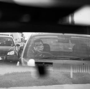 The point of view, knowing what to photograph and why photographing, thickens its meaning in the series "The rear-view mirror". It has been said that photography looks to the future through the rear-view mirror, indicating with this assumption the strong vocation of photography to reinforce its tradition. It is certain that with this series we are at the conclusion of the exploratory part of the tics and the habits - often bad - of the drivers driving their cars.